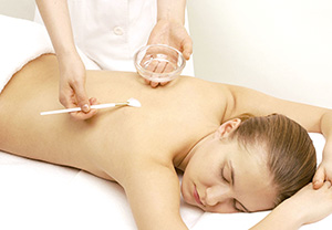 背中マッサージ → 背中ピーリング → マスク → 整肌