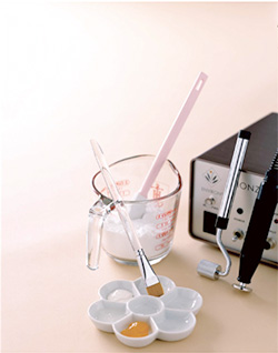 色素沈着が気になるひざの下にピーリングマスクを施し、肌色を整えます。